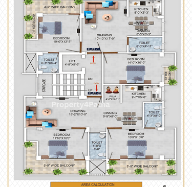 Spacious Living: Select flats come with wide balconies and an additional puja room, perfect for those who value extra space and spiritual solace.