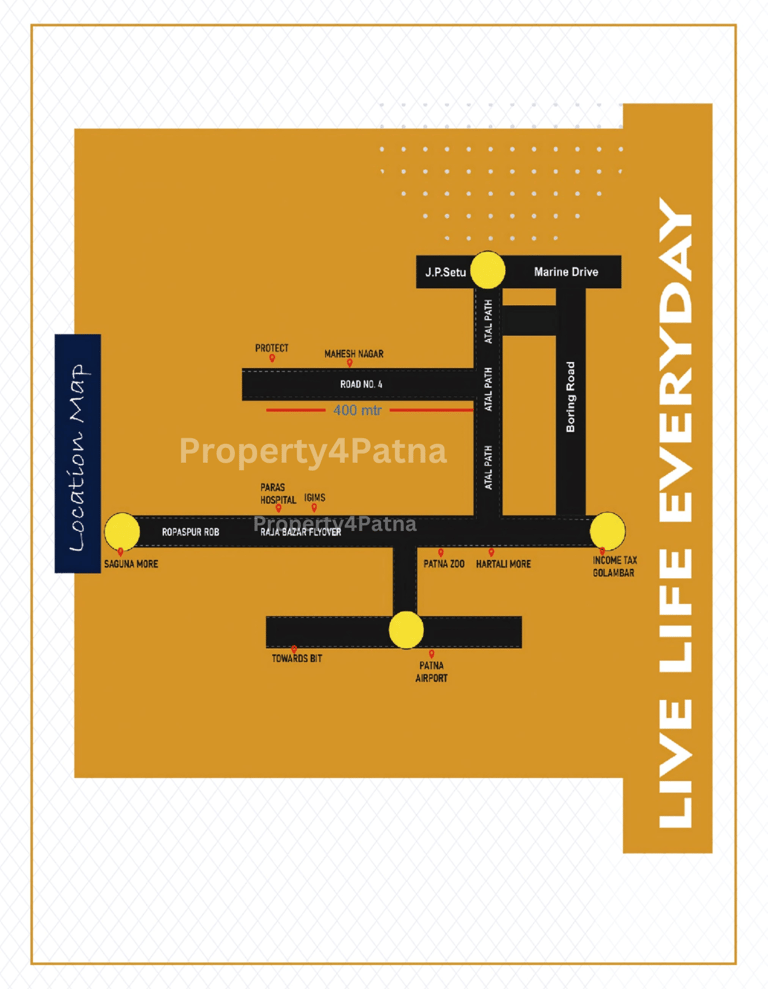 Connectivity: Close to key thoroughfares such as Boring Road, Patna Marine Drive, Bailey Road, and Rajiv Nagar.