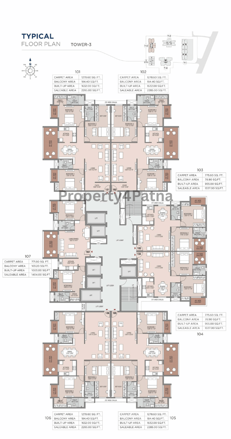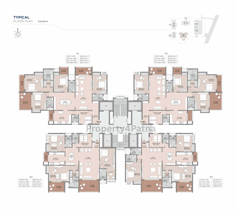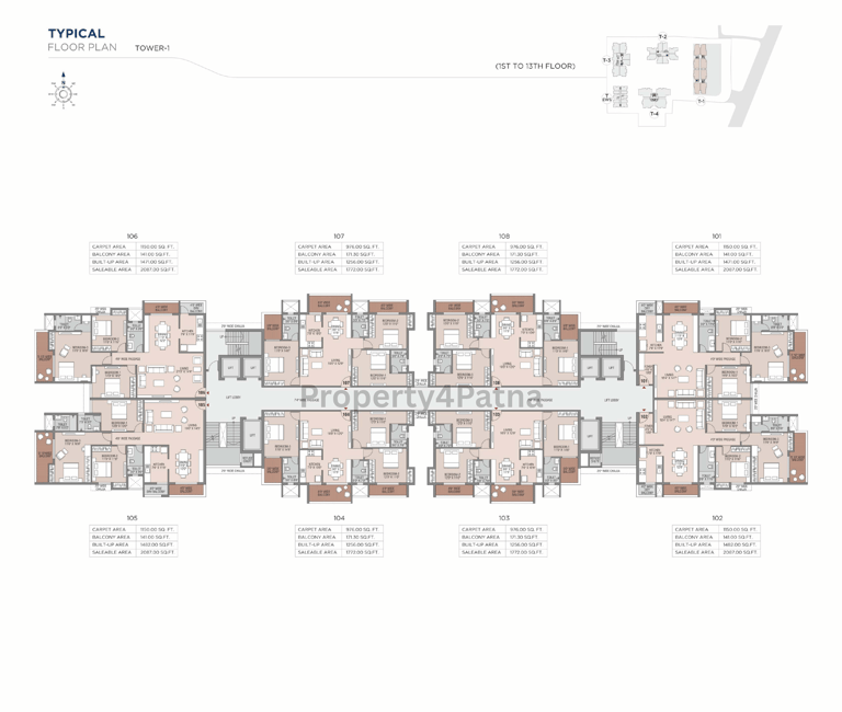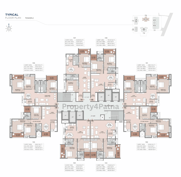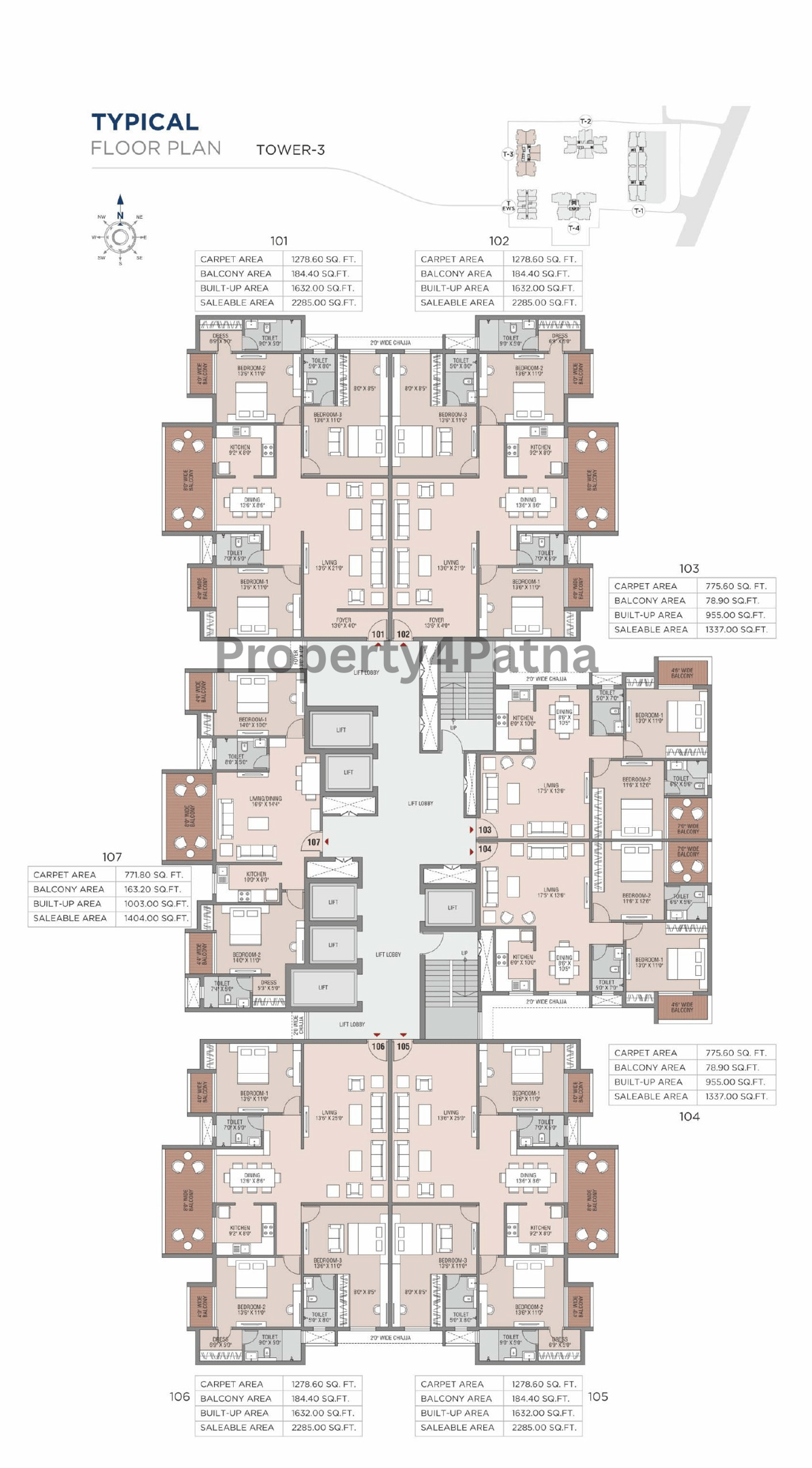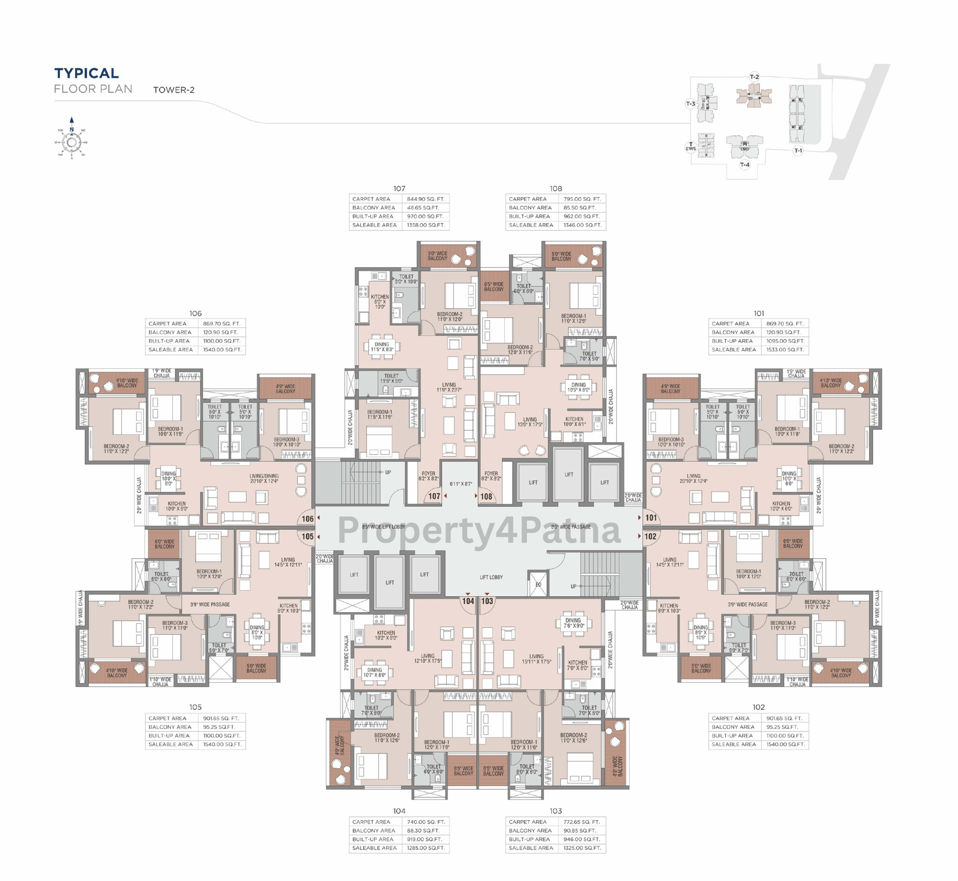 Total No of Towers- 5 (T-1, T-2, T-3, T-4, T-EWS