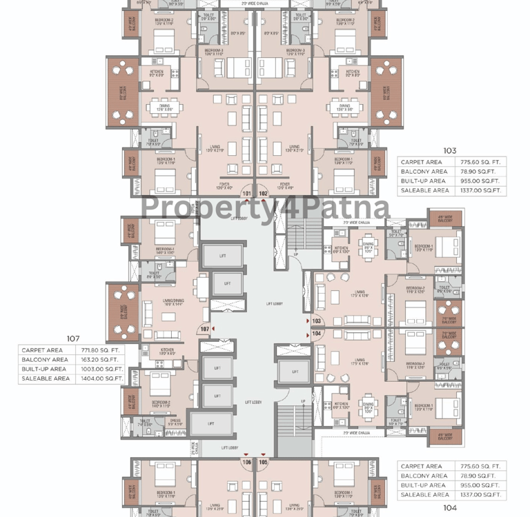 3 BHK Flats : 2285 Sqft.