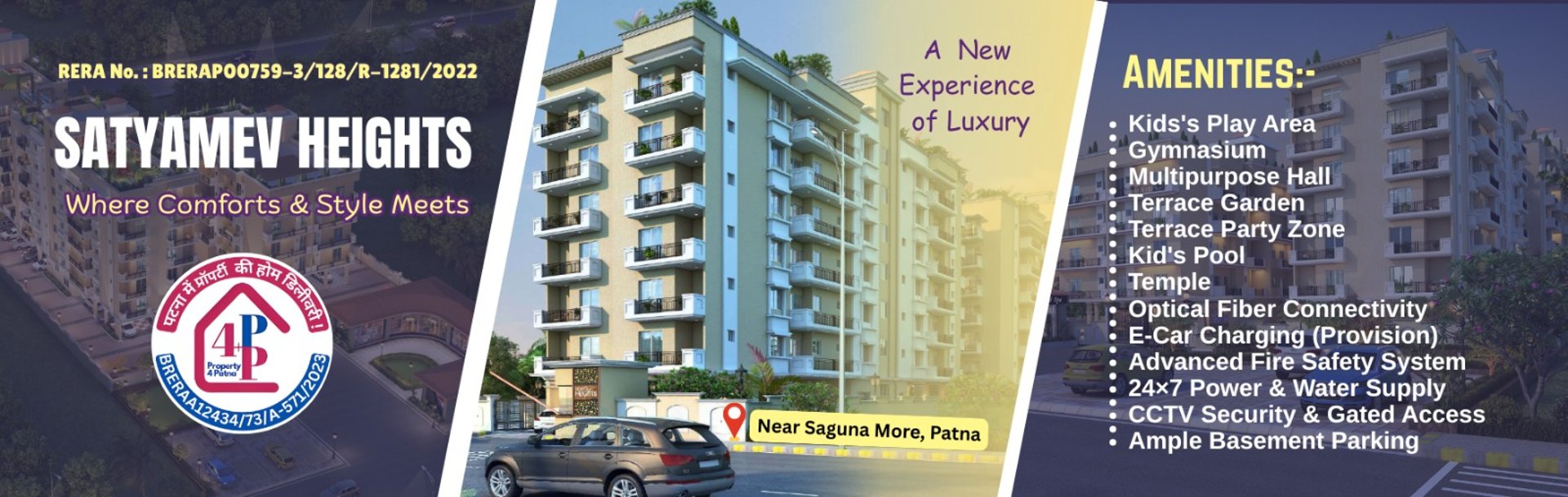 Satyamev Heights is located at R.K. Puram, Saguna More, Danapur, Patna, one of the most well-connected and fast-developing areas of the city.