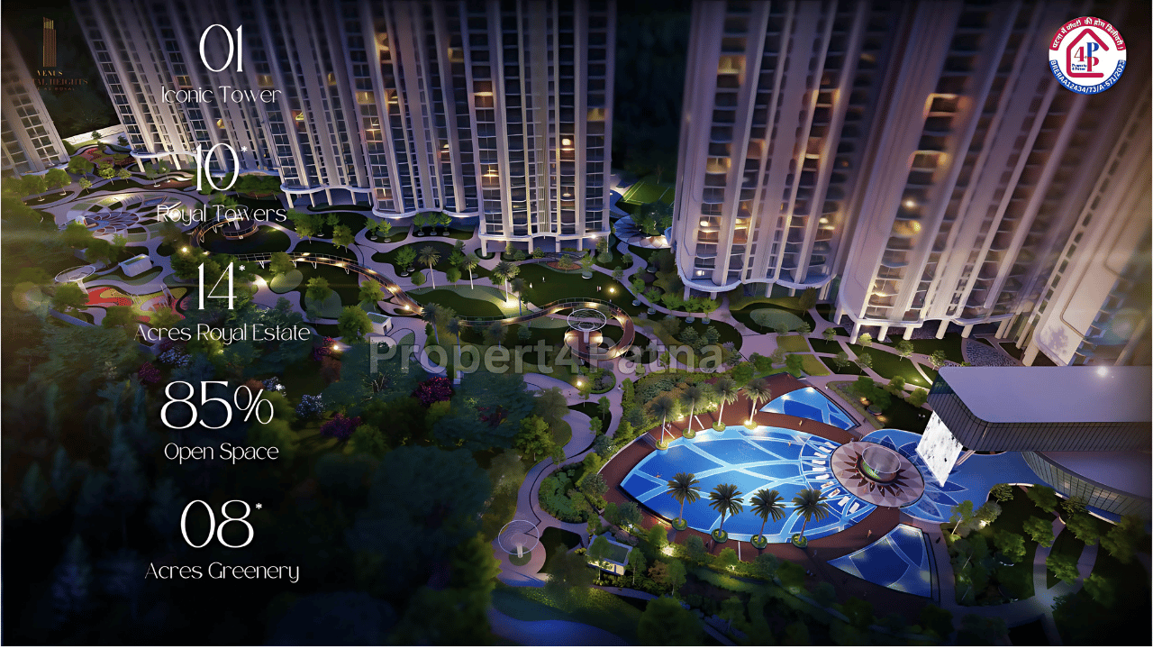 Venus Capital Heights is a landmark residential project in Danapur, Patna, known as Bihar’s tallest residential tower, rising 34 floors high. Spread across 14 acres with 85% open green space, it offers a luxurious and serene living environment. Designed by acclaimed architect Hafeez Contractor, the project features spacious 3, 4, and 5 BHK homes, including duplexes and penthouses, with high ceilings and Vastu-compliant layouts. Residents enjoy world-class amenities, including a 65,000 sq ft clubhouse, swimming pool, spa, gym, pet park, and more. With its earthquake-resistant structure, sustainable features, and prime location on Usari Road, Venus Capital Heights is a perfect blend of luxury, safety, and future-ready living.
