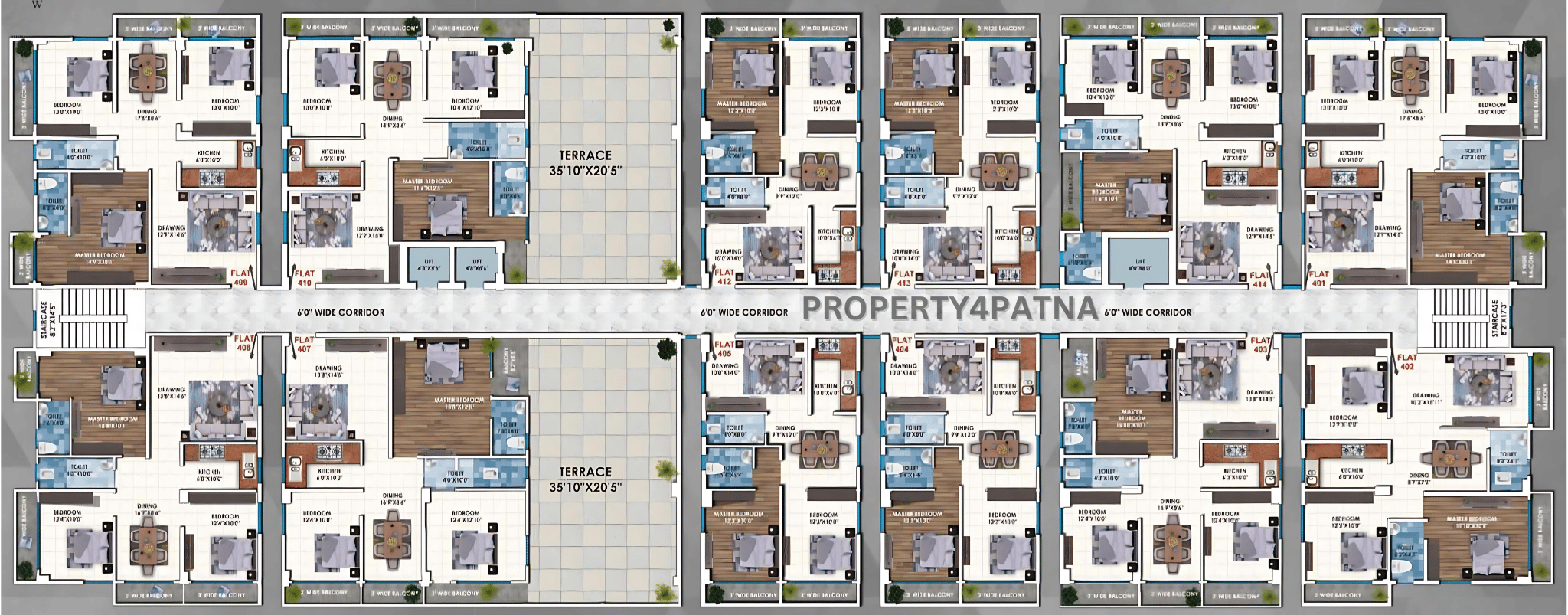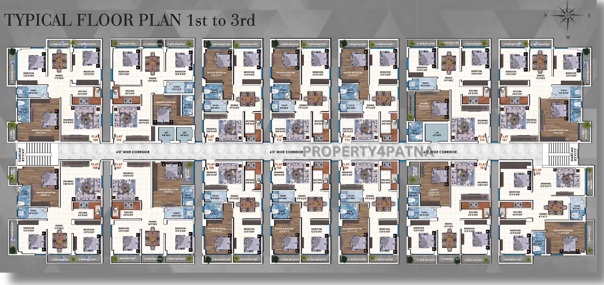 Flat Size : 1360/1425/1540/1572/2296 Sqft.